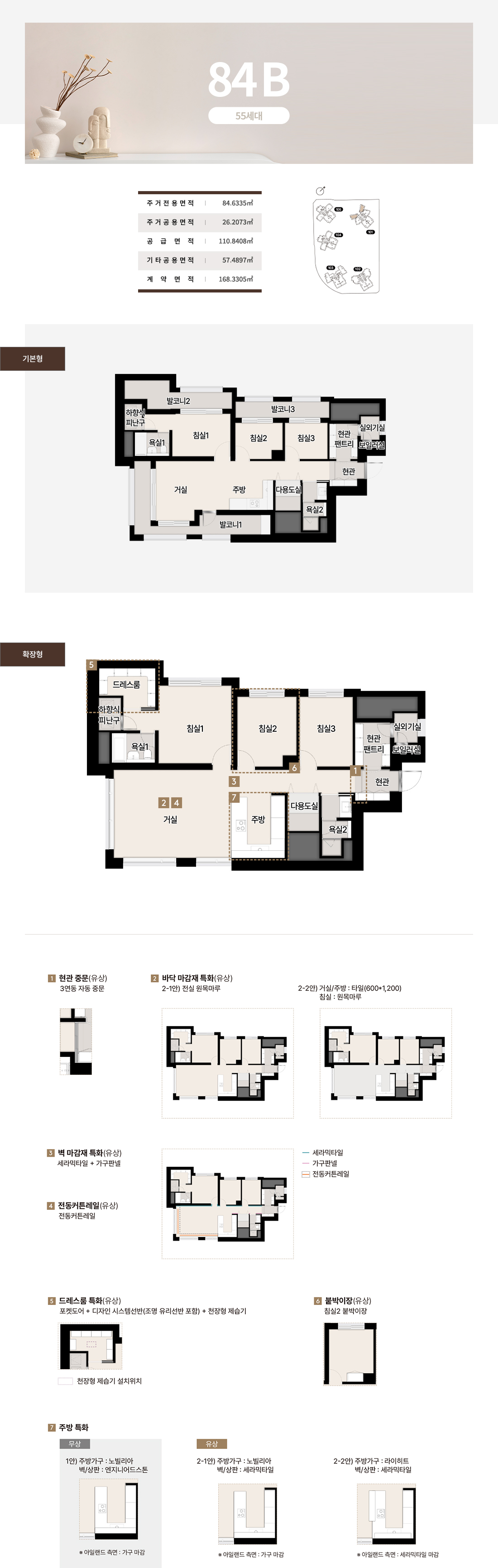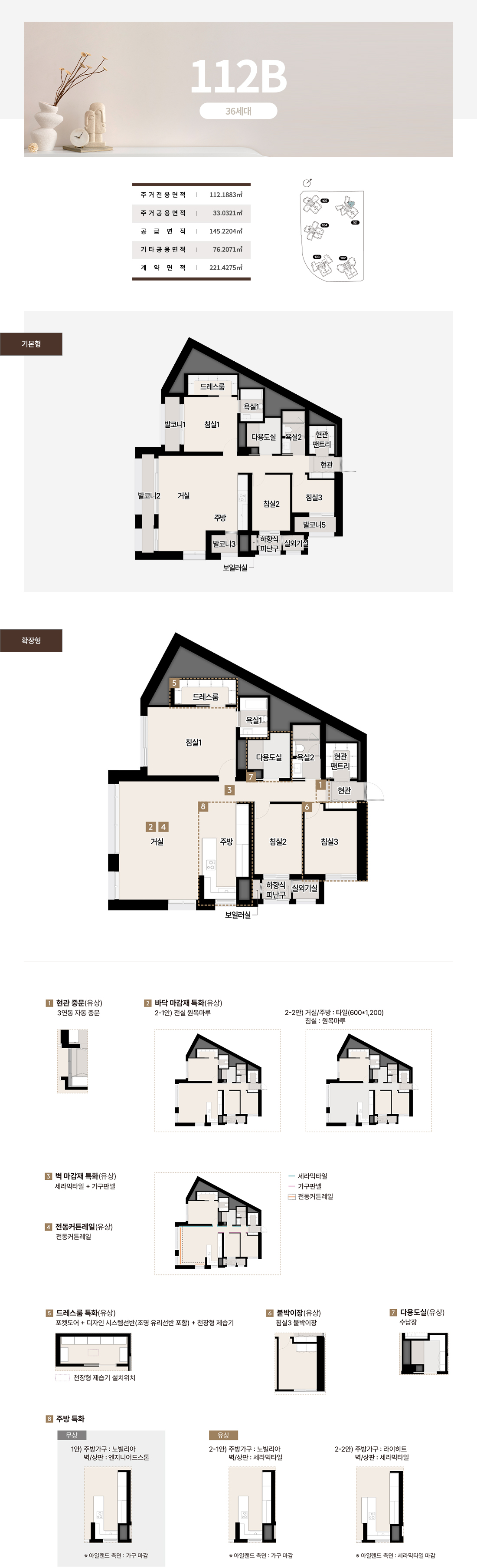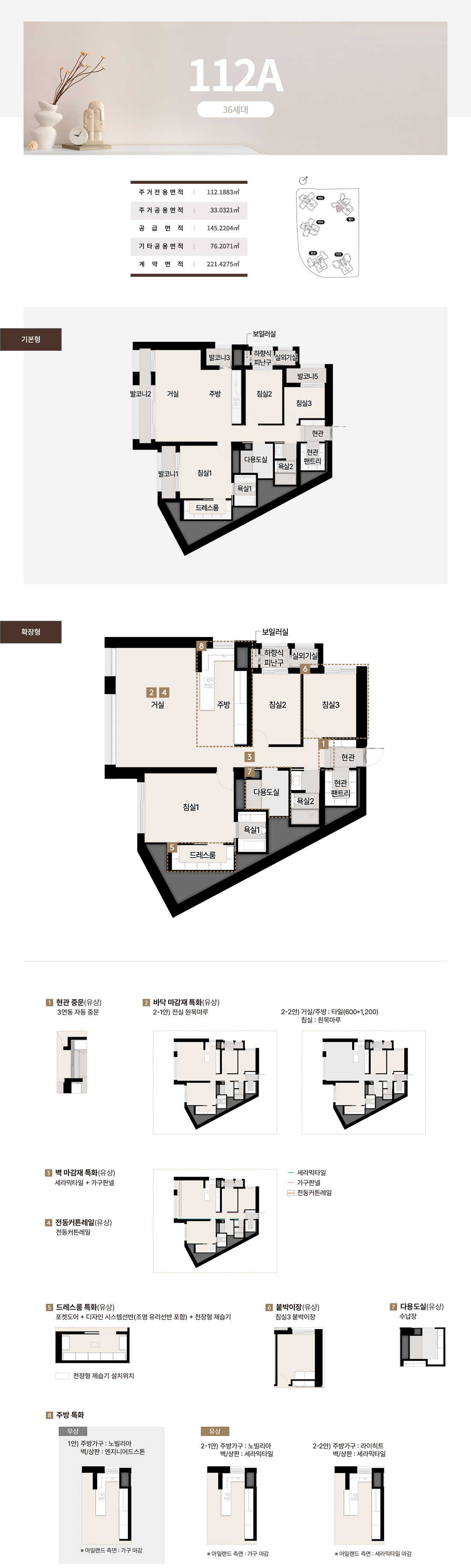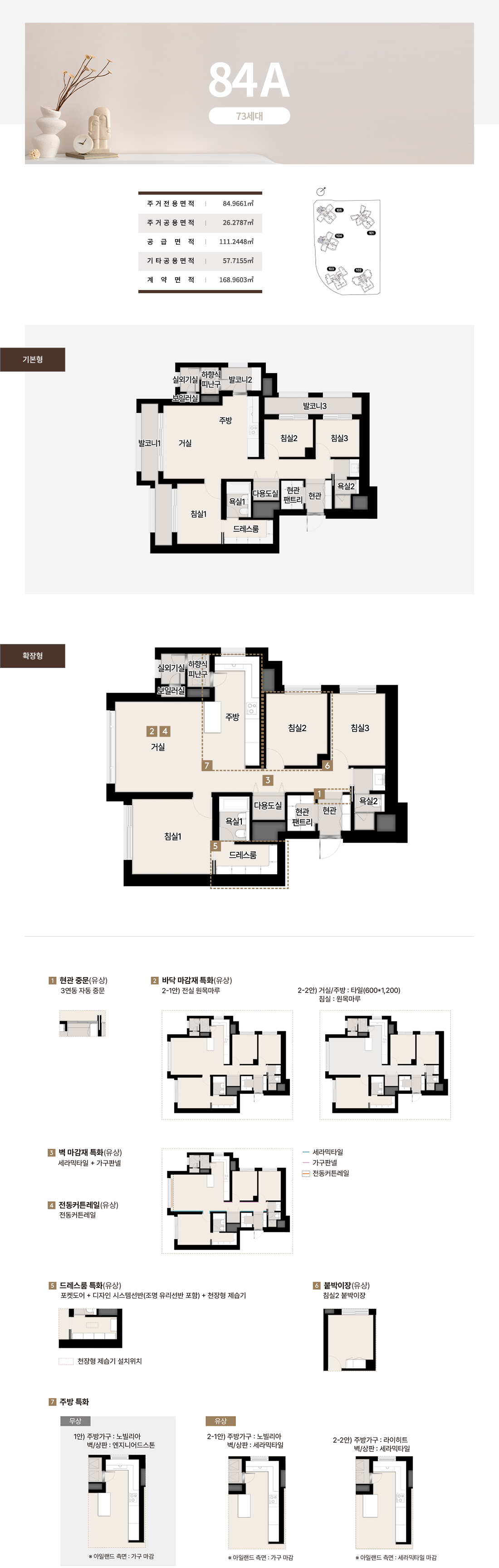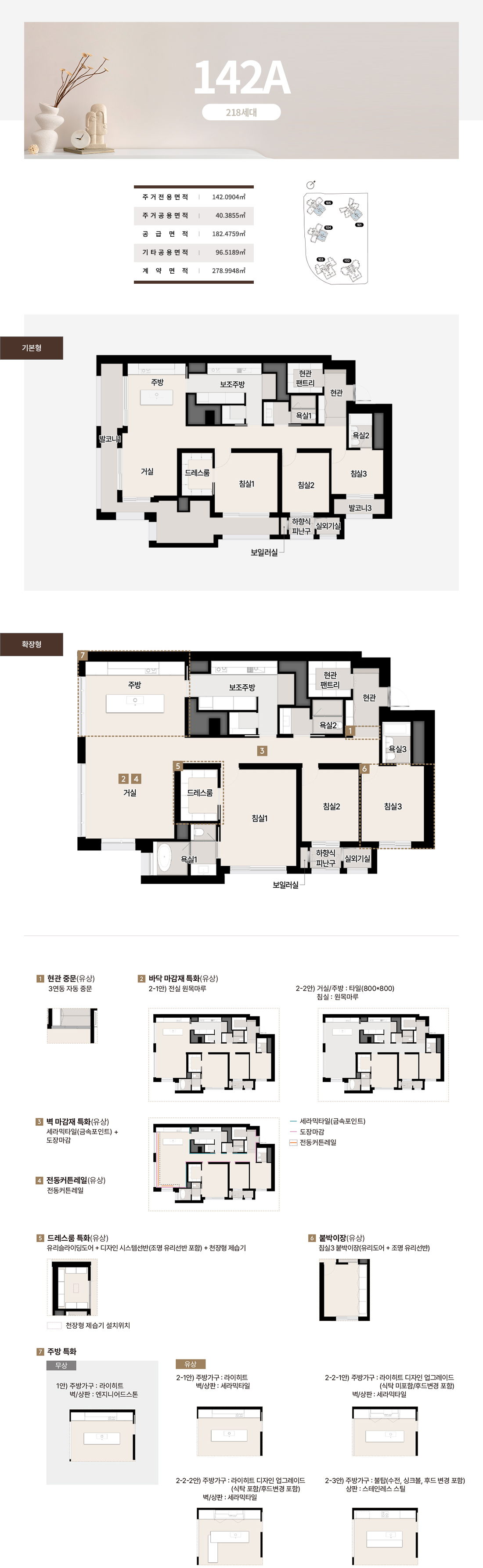 호라이즌 존의 84~112는 타워형 LDK로 개방감을 극대화하고 팬트리와 드레스룸으로 수납 스트레스를 낮췄습니다. 142와 144의 블러쉬 타입은 거실 이면 개방과 보조주방, 확장 드레스 구성을 통해 가족 동선을 유연하게 연결합니다. 더피크 177과 182는 대형 수납과 광폭 거실, 복합 수납존으로 체감면적을 끌어올렸고, 227~243 펜트하우스는 희소성과 실용을 동시에 설계했습니다. 실제 견본주택에서 가장 공감이 컸던 지점은 발코니와 드레스, 팬트리의 조합이 일상 동선을 간결하게 만든다는 점이었습니다. 이 전개는 써밋 리미티드 남천의 상품성이 왜 높은지 잘 보여줍니다.