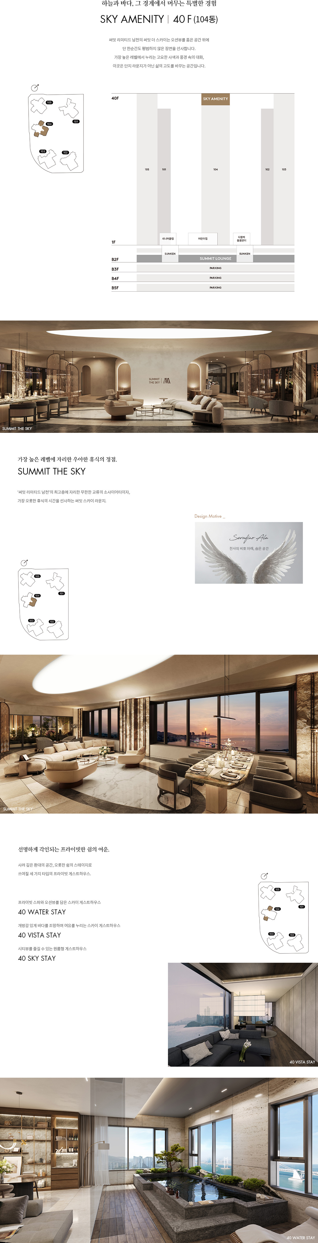 지하 커뮤니티에는 프라이빗 시네마, 사우나, 피트니스, GX와 필라테스, 골프연습장, 테니스 코트, 라운지와 카페, 다이닝 공간까지 폭넓게 들어섭니다. 남천서재와 어린이집, 다 함께 돌봄 센터, 공동육아나눔터, 시니어클럽 등 생애주기형 시설 배치도 인상적입니다. 40층 스카이 어메니티와 게스트하우스, 라운지는 바다와 도심을 관통하는 뷰로 일상의 만족도를 끌어올립니다. 이러한 구성은 써밋 리미티드 남천이 거주 자체를 ‘경험’으로 만든다는 사실을 증명합니다.