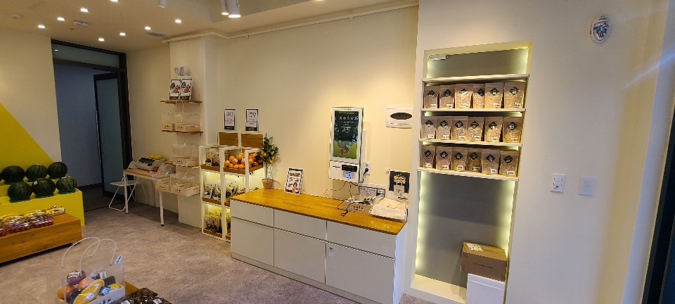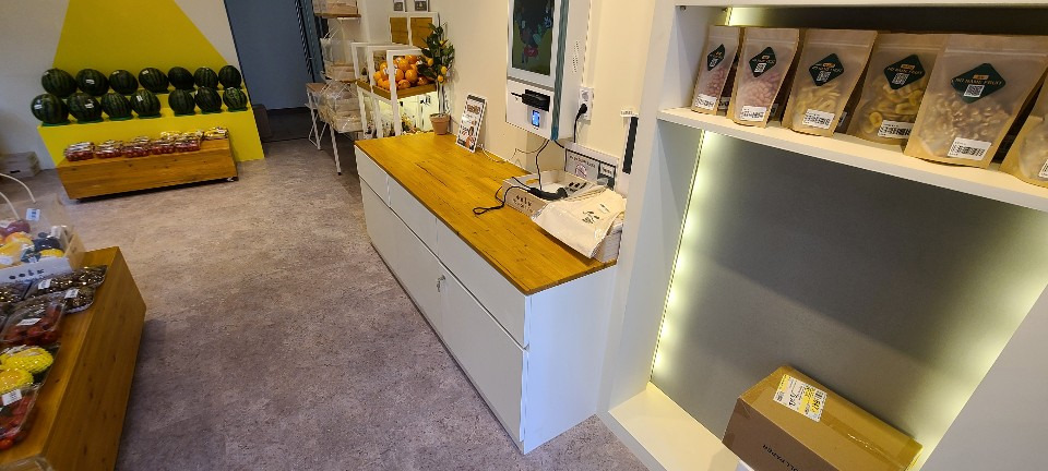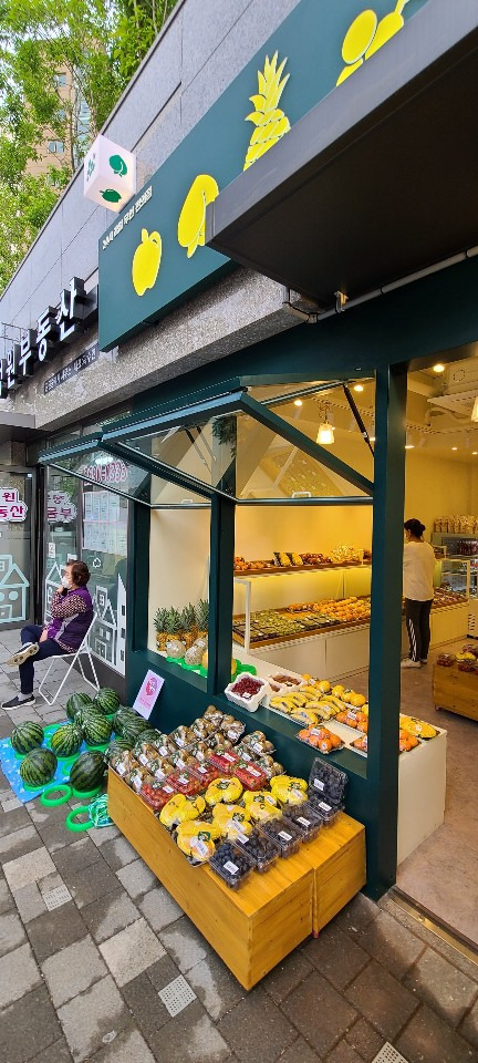 서울 목동 과일가게 인테리어 8평 시공현장 인테리어 홈코디 분석 내용 무인상점으로 키오스크 설치 벽체는 도장 과일진열대는 각파이프로 뼈대을 제작후 삼나무 집성목으로 바구니 제작 진열대는 LED조명 바닥은 데코타일시공 외부는 갈바시공 창문은 유압쇼바을 달아서 두번 접히게 제작 가마찌도어 제작 빠른시공과 저렴한 가격 리뷰 0 포토 리뷰만 보기 목록